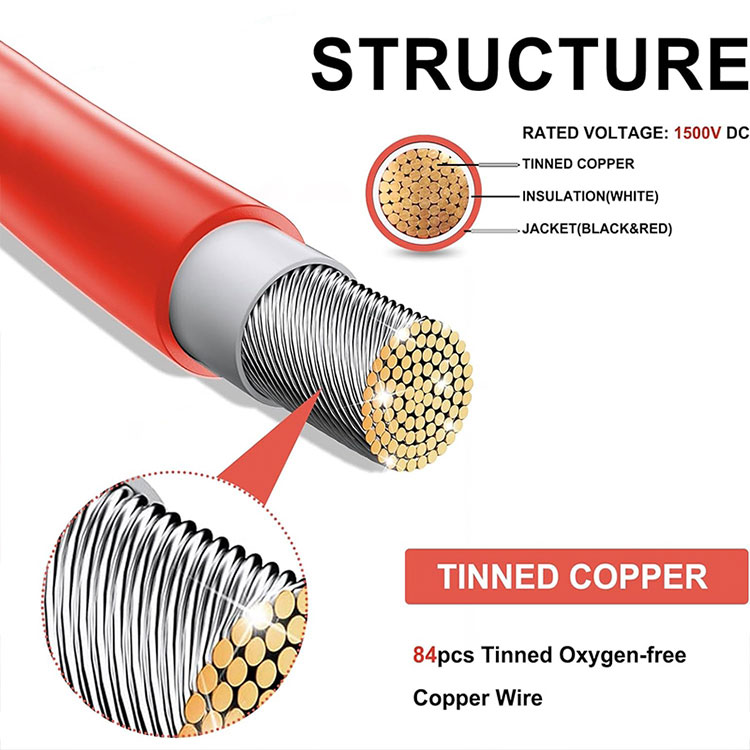 Insulasi awét: Kawat panel surya dilapis ku bahan insulasi tahan cuaca anu tiasa nahan lingkungan anu parah sapertos radiasi UV, Uap, sareng suhu ekstrim, mastikeun operasi stabil jangka panjang kabel.